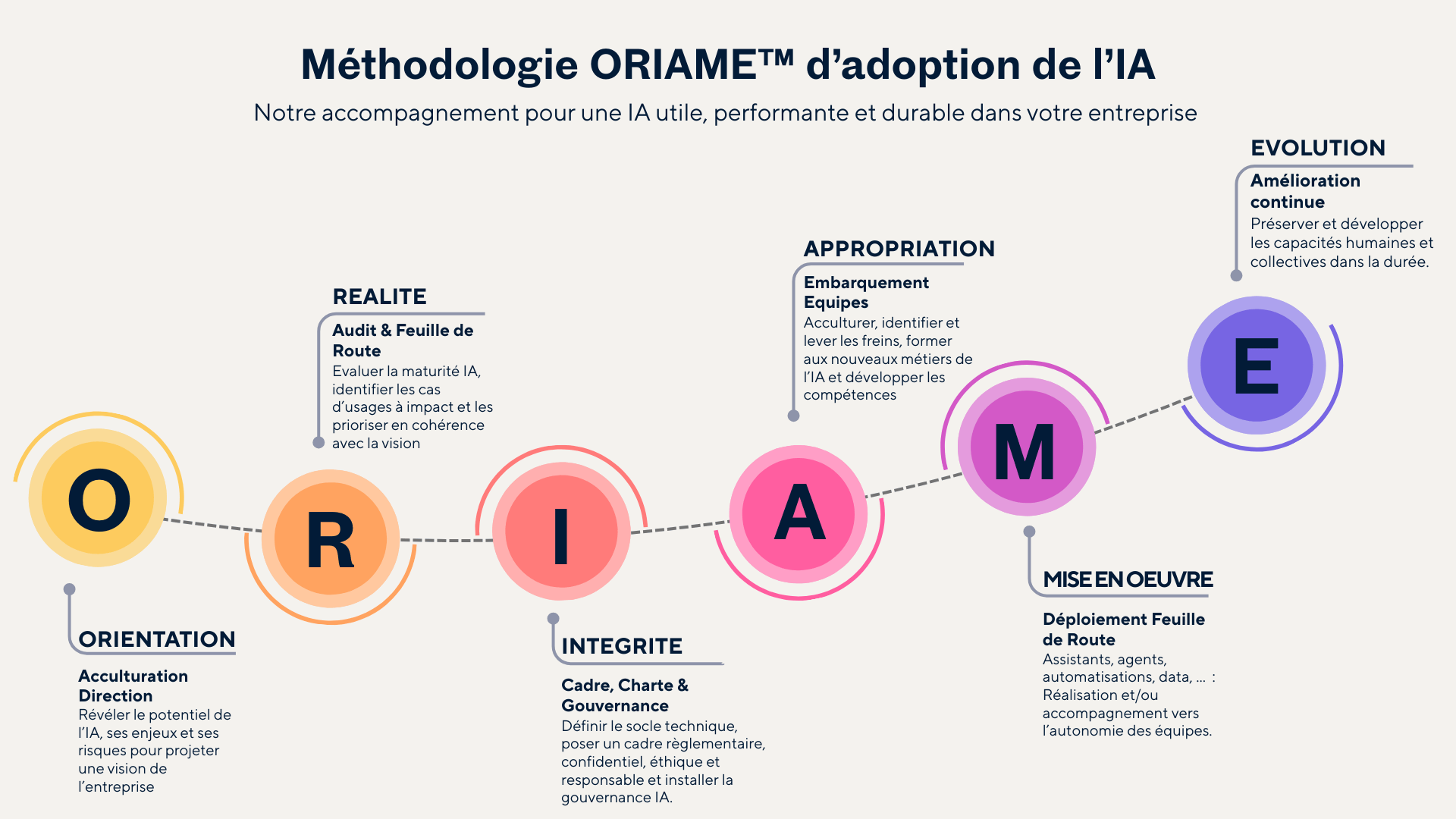ORIAME™ accompagne les organisations avec une adoption progressive et maîtrisée de l’IA, là où elle est utile, en alignant technologie, gouvernance et dynamique humaine.